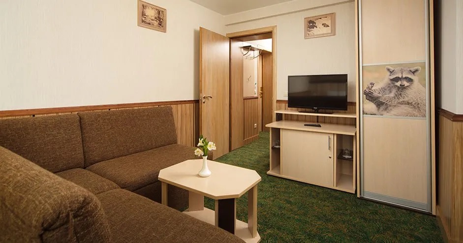 Проживание домашних животных допускается в номерах Стандарт, Стандарт плюс, Супериор, Семейный — собак до 10 кг, при наличии ветеринарных документов установленного образца.