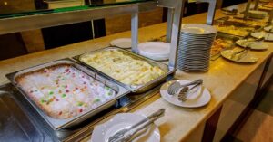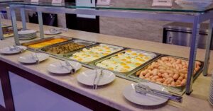 Ресторан шведской линии работает по следующему расписанию: Завтрак: 8:00 — 10:00 (по выходным 8:30 — 11:00). Обед: 13:00 — 15:00. Ужин: 18:00 – 20:00 (понедельник — четверг), 18:00 – 21:00 (пятница), 18:00 – 20:00 (суббота — воскресенье).