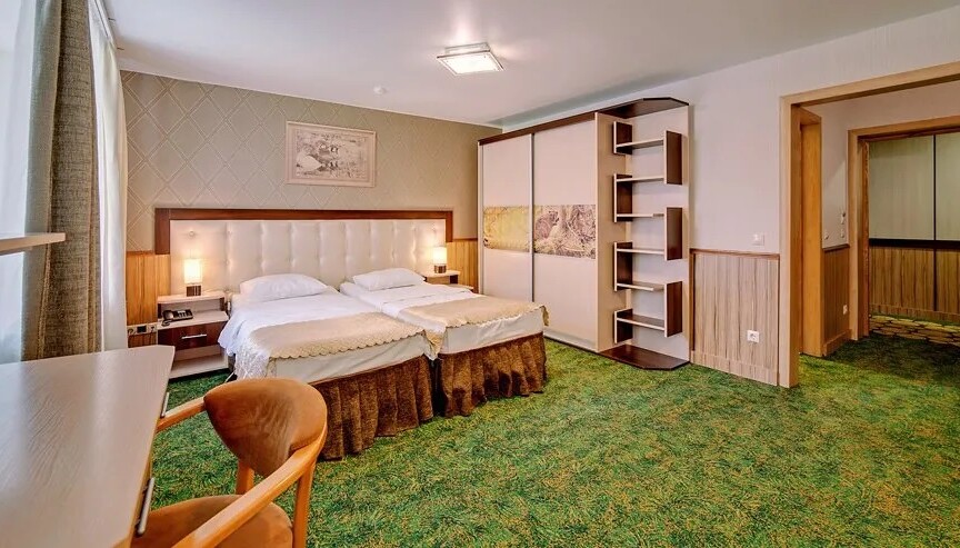 В номере: две раздельные кровати, две прикроватные тумбочки, две прикроватные лампы, шкаф для одежды, кресло (раскладывается в дополнительную кровать),